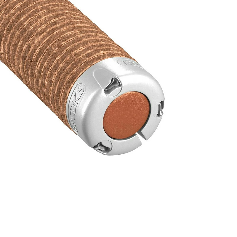 Brooks Plump Ledergriffe werden aus dem gleichen pflanzlich gegerbten Echtleder hergestellt wie Brooks Sättel. Jeder Griff ist aus einem Stapel von Lederscheiben gefertigt, der durch drei Speichen zusammengehalten wird. So kann der Griff exakt auf die gewünschte Länge eingestellt werden. Standardlänge ist 130 mm. Im Lieferumfang sind 80 mm Speichen zum Kürzen enthalten.