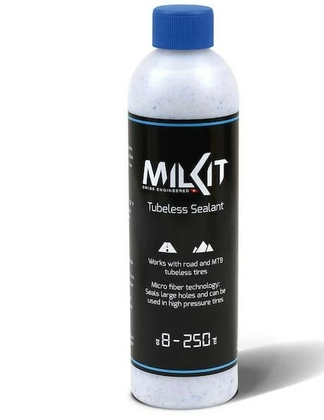 Darüber hinaus verwendet milKit zur besseren Dichtfähigkeit unter hohem Druck Mikrofasern und ist damit prädestiniert zum Einsatz in Road-Tubeless-Reifen.